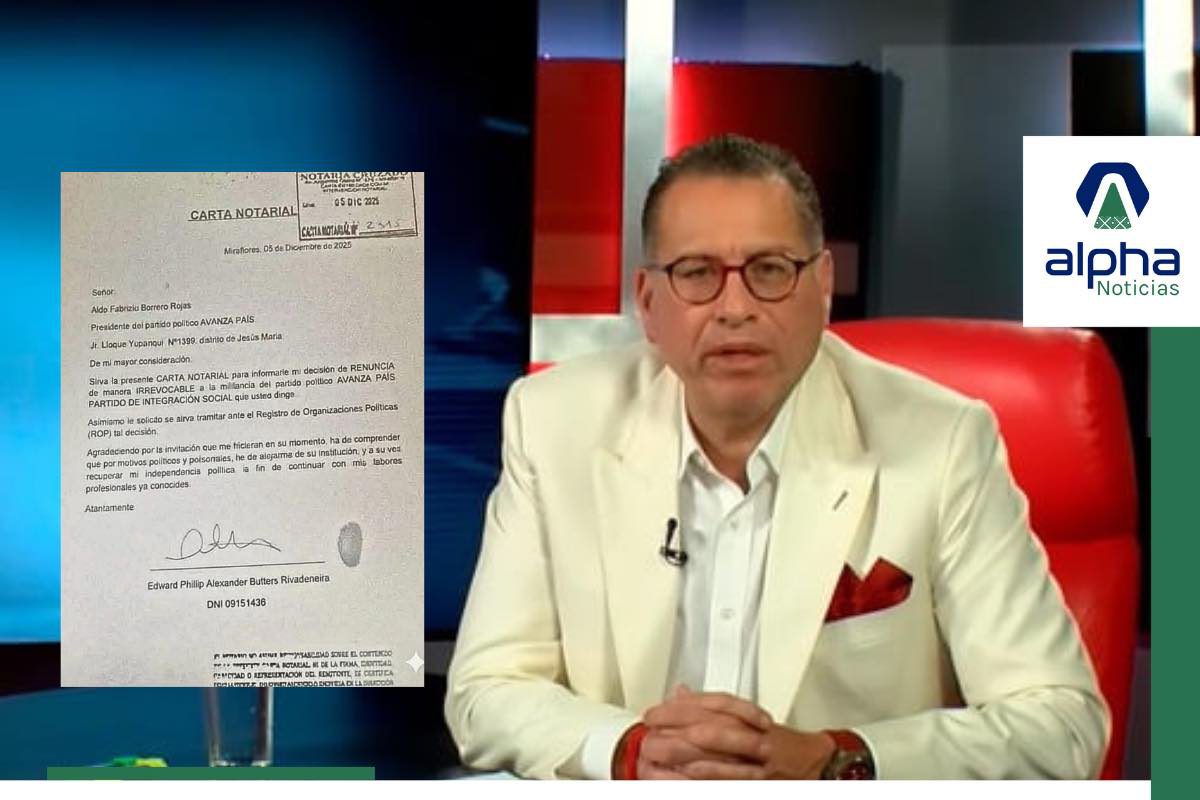 Phillip Butters presentó su renuncia irrevocable a Avanza País mediante una carta notarial enviada a la dirigencia del partido. Con esta decisión, queda definitivamente fuera de la contienda presidencial 2026. En el documento, Butters explica que se aparta por motivos políticos y personales, subrayando que desea mantener su independencia y continuar con sus actividades profesionales sin compromisos partidarios.