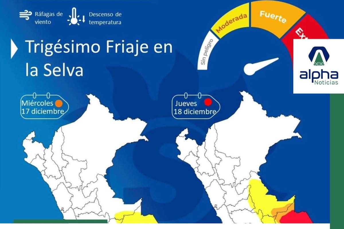 El SENAMHI emitió el Aviso Meteorológico N.º 448 para informar sobre el trigésimo friaje del año, que impactará la selva peruana desde el miércoles 17 hasta el jueves 18 de diciembre. El evento generará un marcado descenso de temperaturas y fuertes vientos, alcanzando su mayor intensidad el segundo día.