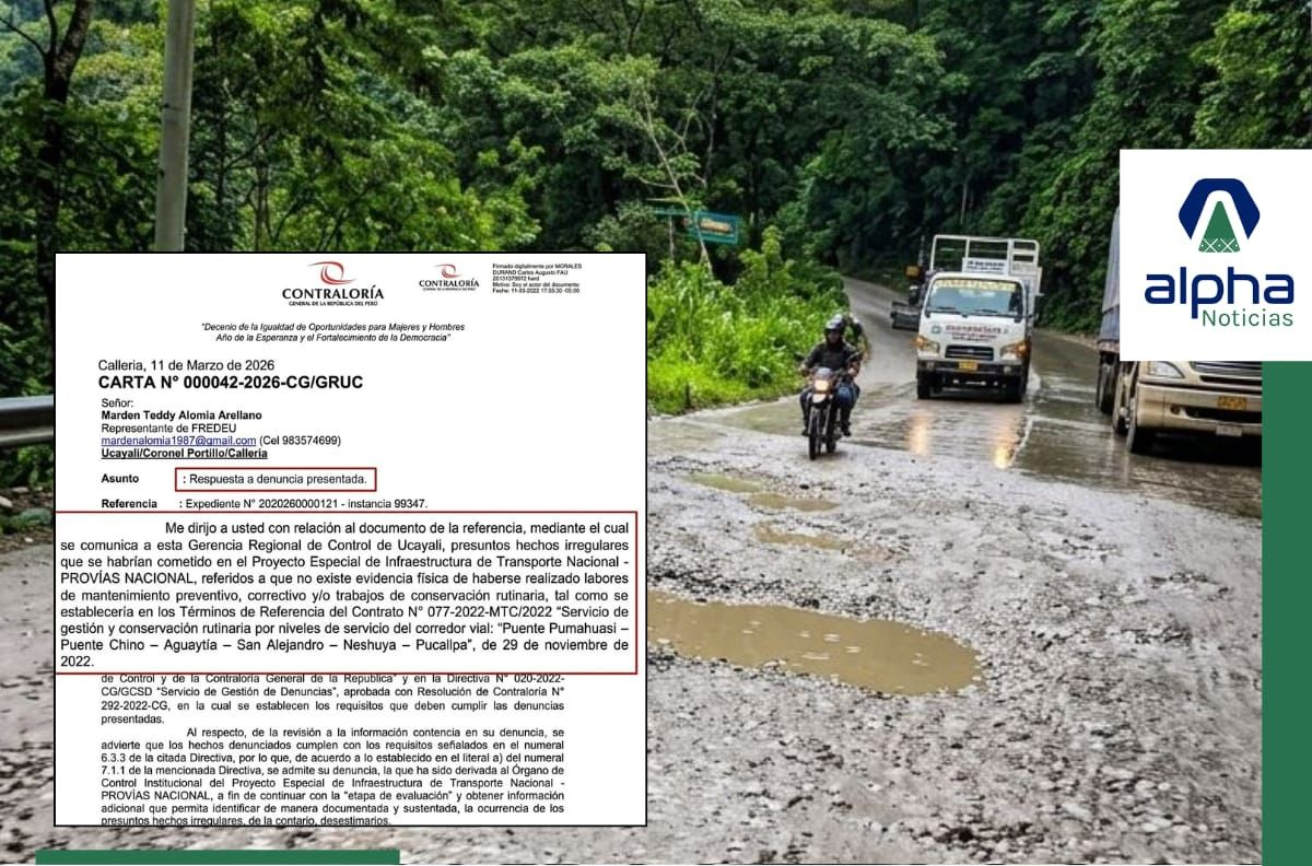 De acuerdo con la Gerencia Regional de Control de Ucayali, la denuncia fue admitida luego de verificarse que cumple con los requisitos establecidos en el Sistema Nacional de Denuncias. El caso fue derivado al Órgano de Control Institucional (OCI) de Provías Nacional, entidad que estará a cargo de la etapa de evaluación correspondiente.